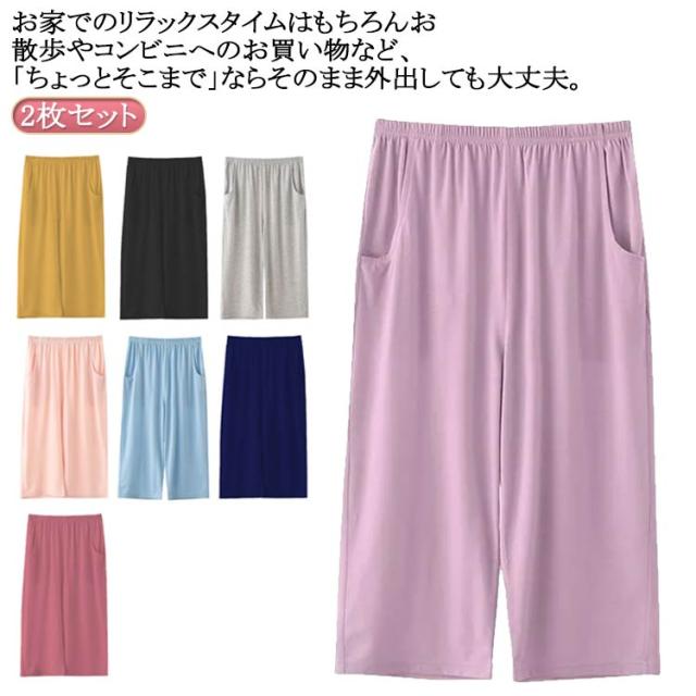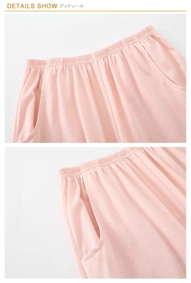ハーフパンツ ルームパンツ 綿 涼しい ボトムス 吸水性 おしゃれ イージーパンツ レディース ひざ下 7分丈 春夏 2枚セット ワイドパンツ コットン 部屋着 リラックス パジャマ ルームウェア ゆったり ポケット付 無地 可愛い 大きいサイズ 通気性