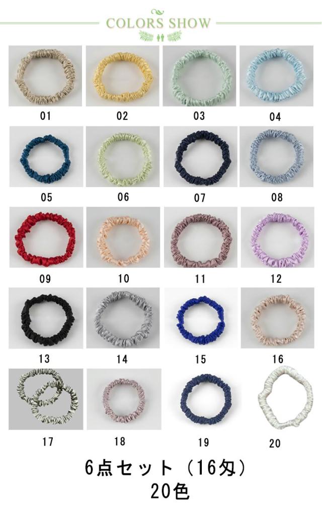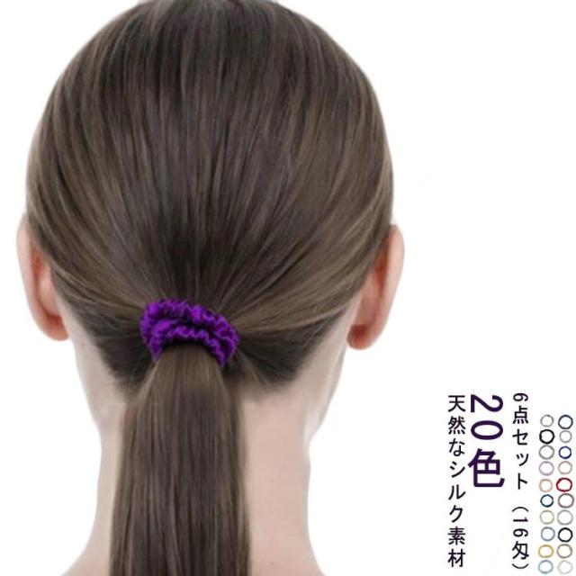 髪ゴム シルク 20色】ヘアゴム silk 【6点セット シュシュ 髪飾り 髪留め シュシュ シルクシュシュ 黒 白 ヘアアクセサリー 細い レディース 女の子 シルクシュシュ リングゴム シルクヘアシュシュ 幅1cm シルク製