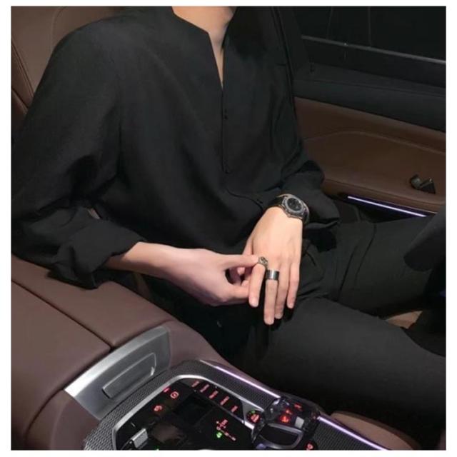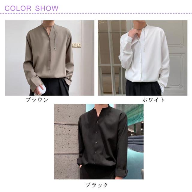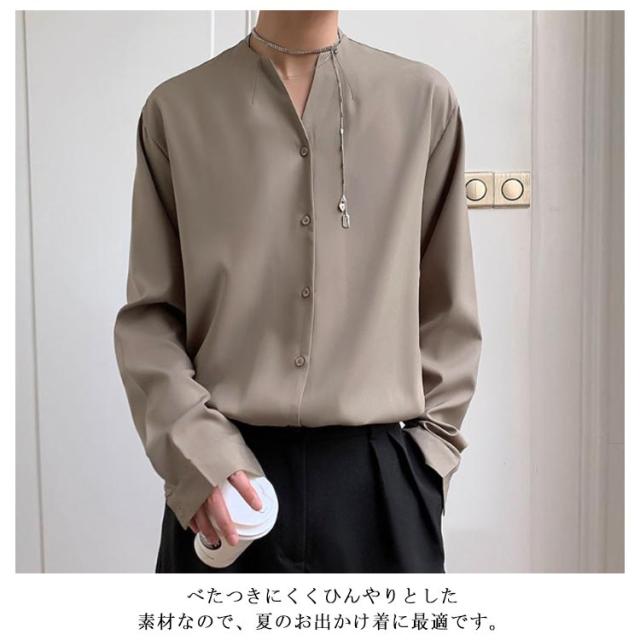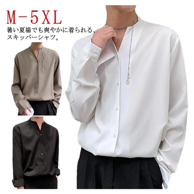 シャツ スタンドカラー 襟なしシャツ スキッパー ノーカラー カジュアルシャツ 長袖 メンズ 夏 シャツ 薄手 おしゃれ Vネック 長袖シャツ 前開き シャツ トップス ゆったり 大きいサイズ 春夏秋 春服 夏服 秋服 ビジネス カジュアル