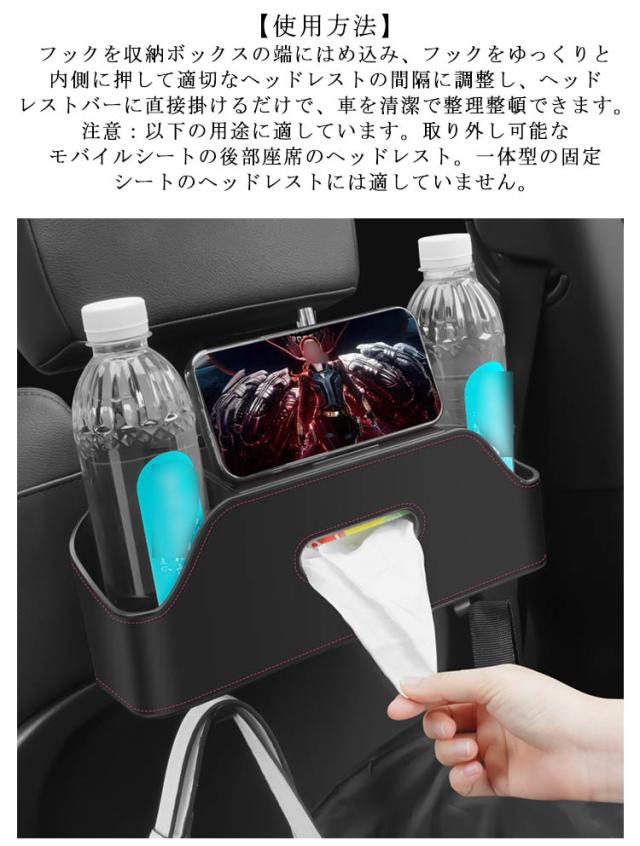 車用シートバック 多機能収納ボックス 後部座席用 車用 ドリンクホルダー2個付き 収納ボックス 車の後部座席 車の後部座席 ティッシュボックス 後部座席収納 PUレザー 防水 防汚 取り付け簡単 多機能 旅行用 収納ケース 車用品 カー用品