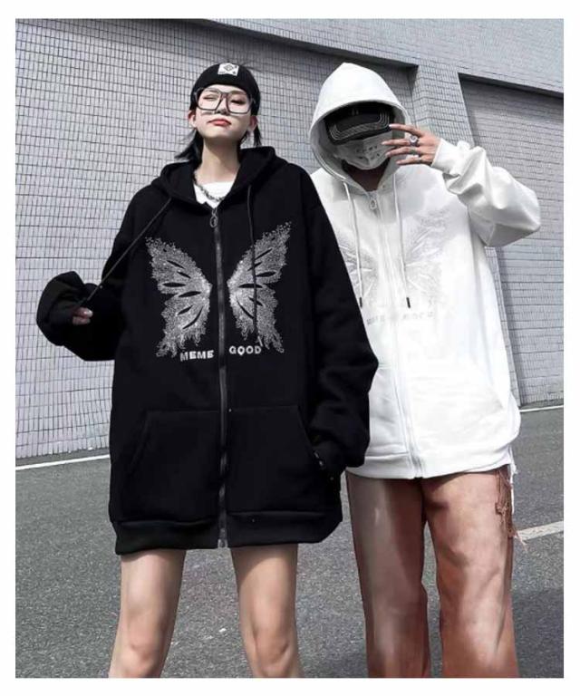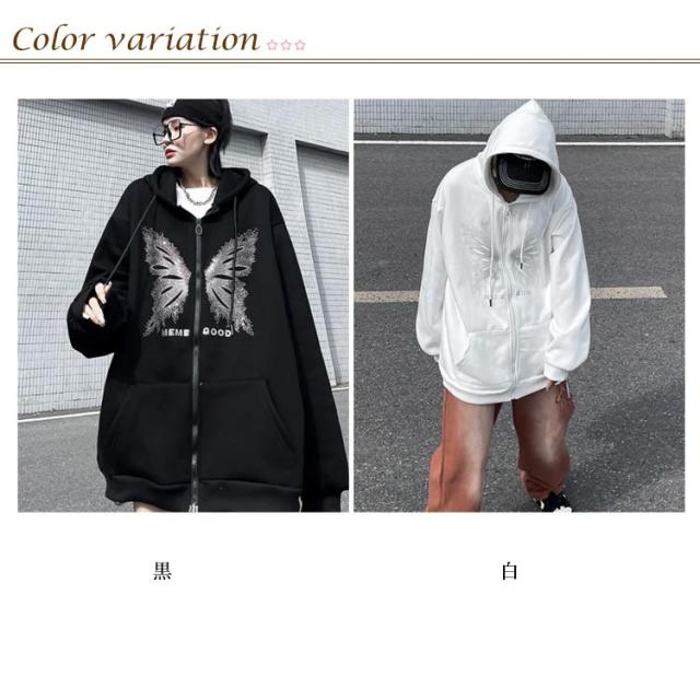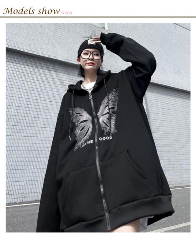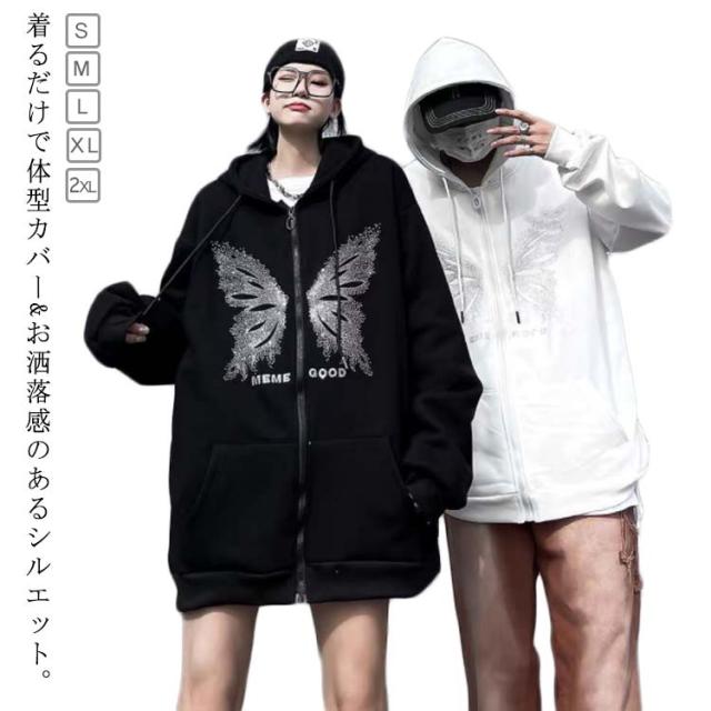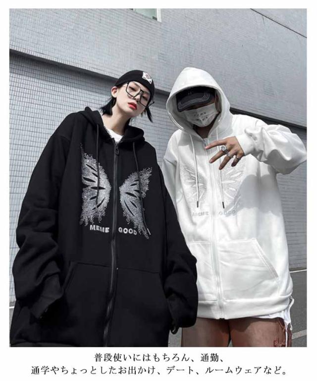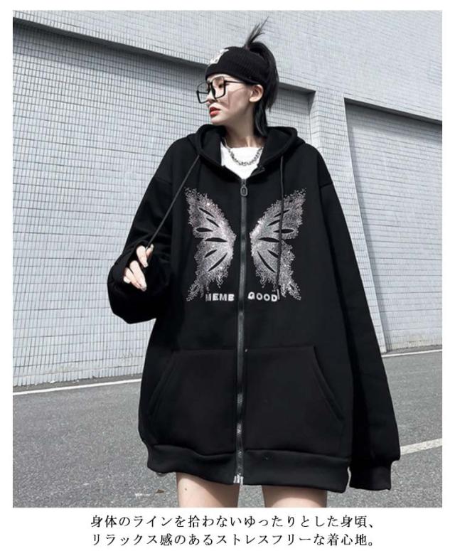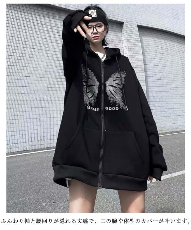オーバーサイズ アウター パーカーレディース トレーナー ジップアップ ジップアップ 病みかわいい おしゃれ 男女兼用 サブカル系 フード付き スウェット 長袖 地雷系 日常着 お出掛け 原宿系 渋谷系 ストリート系 ギャル服 秋