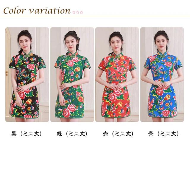 チャイナ風 ミニ丈 チャイナドレス チャイナ服 花柄 パーティードレス コスチューム ロング コスプレ ワンピース レディース チャイナ ロングワンピース チャイナドレス 大人 半袖 ハロウィン パーティー 学園祭 お祭り 出演 仮装 スリット 文化祭 中国