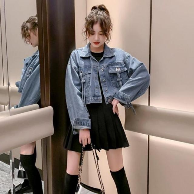 ショート丈 Gジャン レディース デニム アウター ジャケット 短丈 韓国 秋冬 春 デニムアウター デニムジャケット 春物 秋物 ジージャン