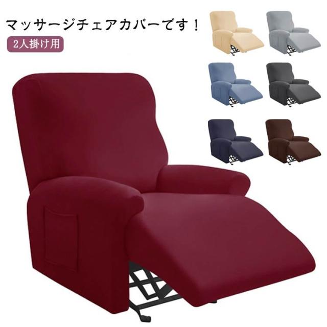 2人掛け リクライニングチェアカバー サイドポケット マッサージチェア 6点セット マッサージチェア 肘付き 電動ソファ カバー 伸縮性 ストレッチ 無地 フィットタイプ ソファーカバー マッサージソファ用 着せ替えカバー 肘あり