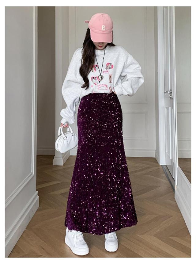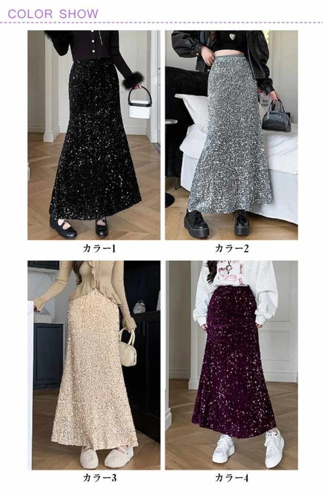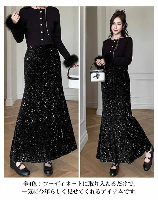 おしゃれ 冬 スパンコール カジュアル ロングスカート スパンコール スカート ハイウェストスカート ロング丈 S 大人 スパンコール 秋 ロング 結婚式 パーティー 光沢 韓国 キラキラ お出かけ M L