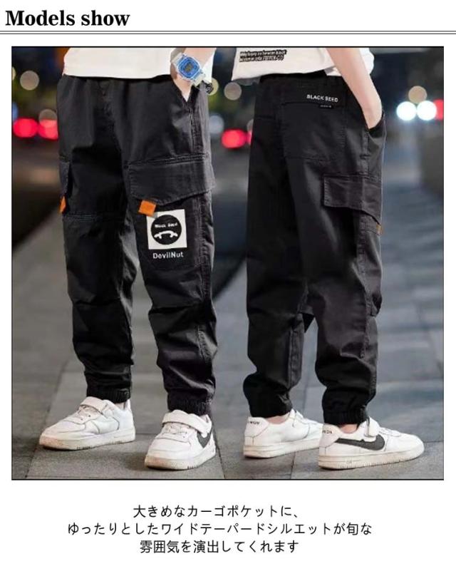 ワイドジョガーカーゴパンツ ワークパンツ 子供服 長ズボン 子供服 ロング 無地 男の子 ボトムス ワイド 長ズボン 裾ゴム 女の子 ユニ ジュニア キッズ ベビー服 ゆったり 秋冬服 ダンス 通園 通学 小学生 中学生 カーゴパンツ 韓国子供服 大人っぽい ダンス