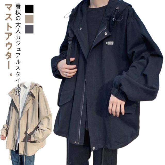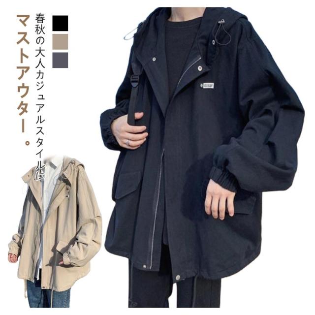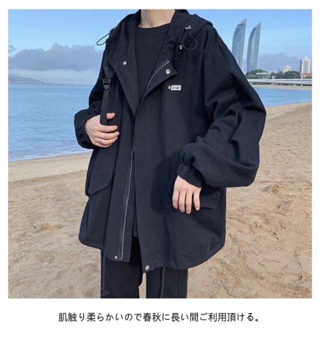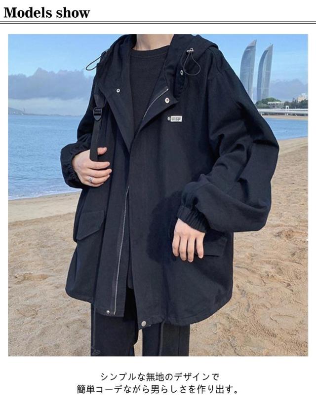 ジャケット マウンテンパーカー ジャンパー コートアウター 冬 春 ゆったり ウインドブレーカー マウンテンパーカー 韓国ファッション フード付き ミリタリー アウター ジャンパー 無地 メンズ 春 秋 大きいサイズ アウトドアウェア 登山ウェア