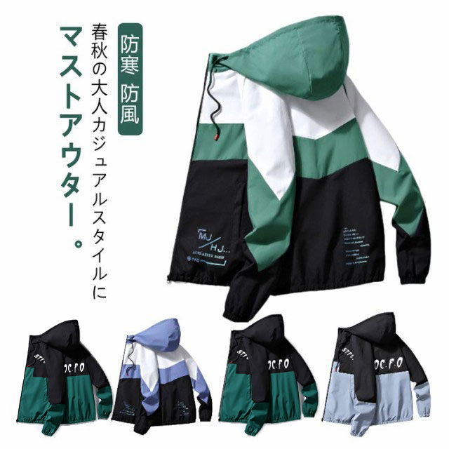 ブルゾン メンズ ライトアウター カジュアルジャケット ジャンパー 防風 カジュアル コート マウンテンパーカー アウター アウトドア 防寒 カジュアルジャケット フード付き 大きサイズ 無地 春 秋 ウィンドブレーカー 無地 アウトドアウェア 登山ウェア