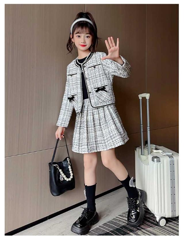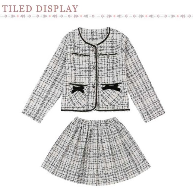 | 女の子ツイードスーツ。 素敵なツイードスーツ、お子様の晴れ舞台に大活躍間違いなし! お出かけや写真撮影だけでなく、学校でも着ることができるし、さまざまな場合で活躍! 入園式、入学式、卒業式、卒園式、ピアノ発表会、結婚式、パーティー、七五三にもぴったり♪ | |