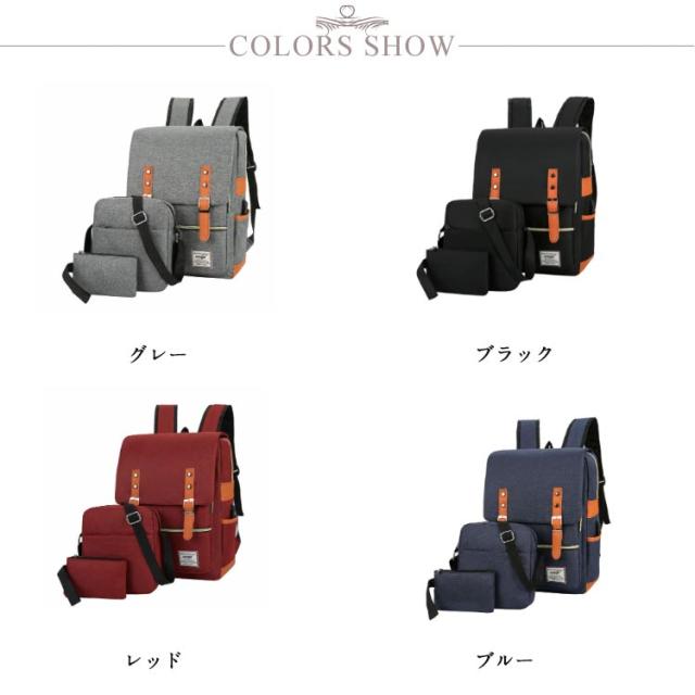 リュック 外部USBポート付き レディース メンズ 3点セット リュック 軽量 撥水 通勤 通学 女子 リュック 韓国 フラップリュック 大容量 おしゃれ リュックサック A4 PCリュック 黒 マザーズリュック マザーズバッグ