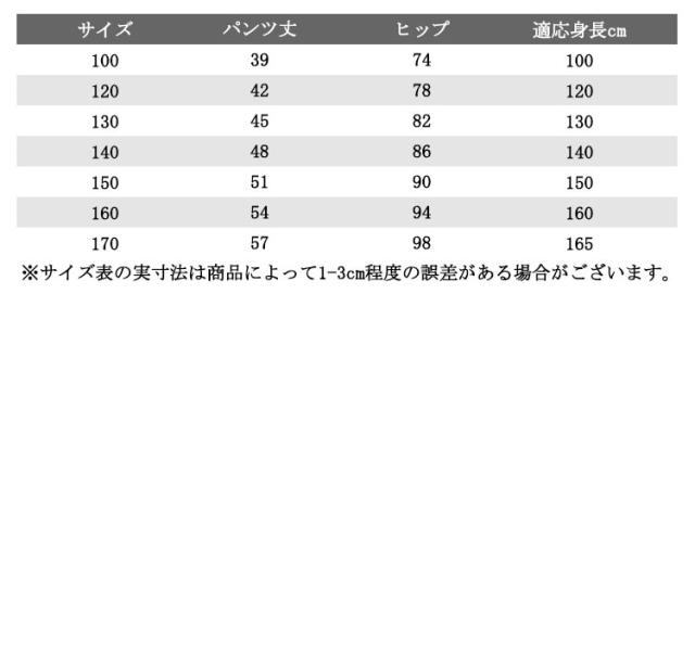 | サイズについての説明 | 【110】着丈39cm ヒップ74cm おすすめ身長110cm 【120】着丈42cm ヒップ78cm おすすめ身長120cm 【130】着丈45cm ヒップ82cm おすすめ身長130cm 【140】着丈48cm ヒップ86cm おすすめ身長140cm 【150】着丈51cm ヒップ90cm おすすめ身長150cm 【160】着丈54cm ヒップ94cm おすすめ身長160cm ※上記サイズは平置き実寸になります。サイズ表の実寸法は商品によって1-3cm程度の誤差がある場合がございます。 |