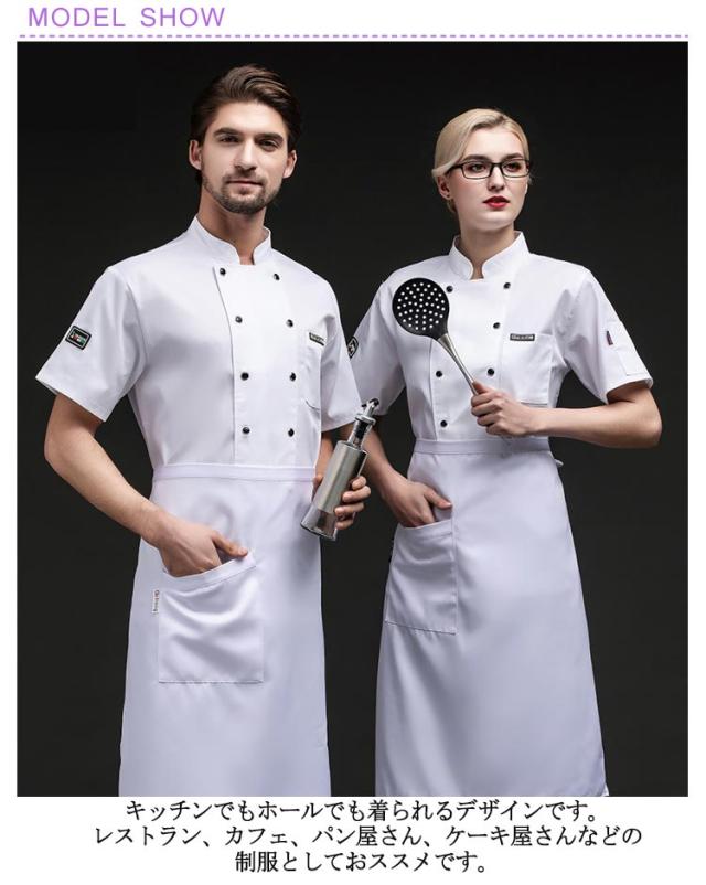 | M-5XL!コックシャツ 半袖 後ろオールメッシュ 男女兼用 後ろはオールメッシュなので通気性に優れ、熱が籠りがちな厨房や、暑い夏場でも毎日快適に着用していただけます。 キッチンでもホールでも着られるデザインです。レストラン、カフェ、パン屋さん、ケーキ屋さんなどの制服としておススメです。 | |