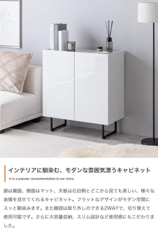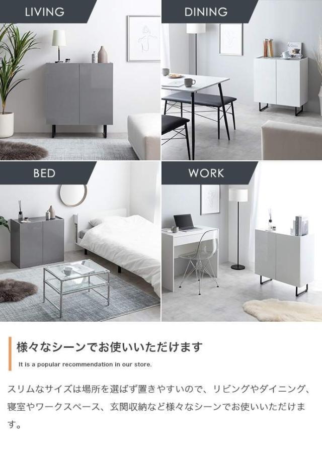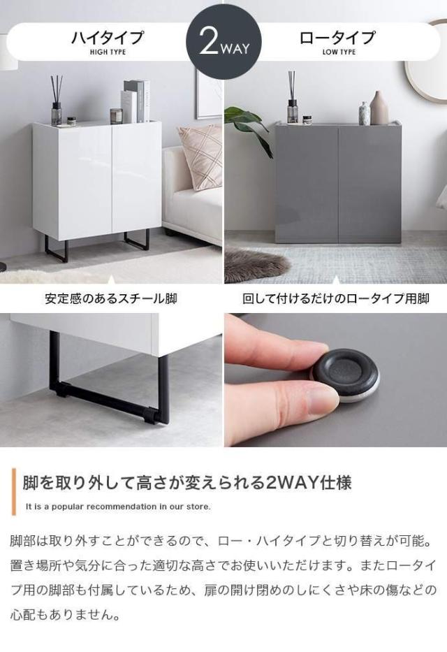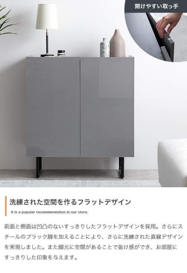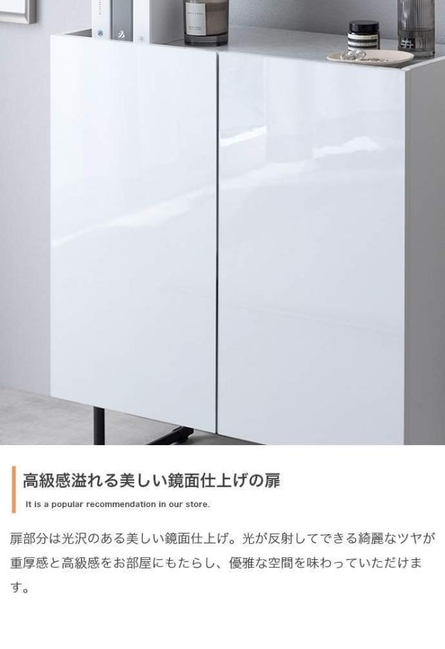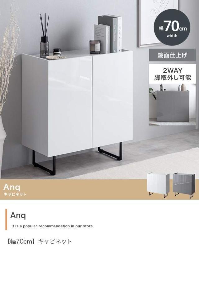 電話台 ファックス台 プリンター台 キャビネット 鏡面仕上 げおしゃれ 戸付き収納庫 カウンター キャビネット 幅70cm Anq