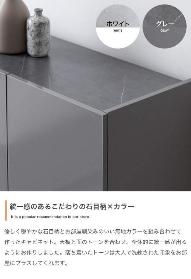 石目柄と鏡面の組み合わせが美しい『Anq(アンク)』シリーズのキャビネット。