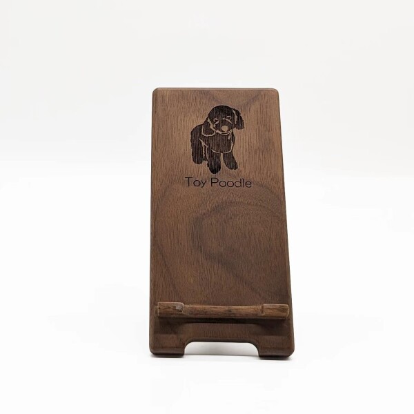 (hej!e) 木製スマホスタンド 卓上スマホスタンド 犬 猫 デザイン プードル レーザー 刻印四段階角度調整 シンプル おしゃれ 素敵 木のぬくもり (プードル, ダークカラー)
