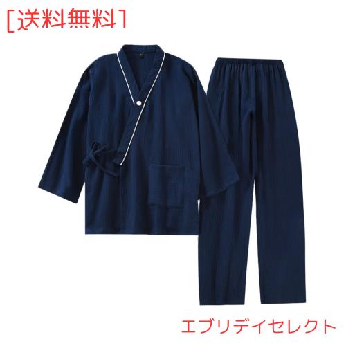 [GREATCALL] パジャマ メンズ 長袖 二重ガーゼ 綿100% 上下セット 和風 甚平 柔らかい 肌に優しい 吸汗 通気 速乾 ゆったり ル