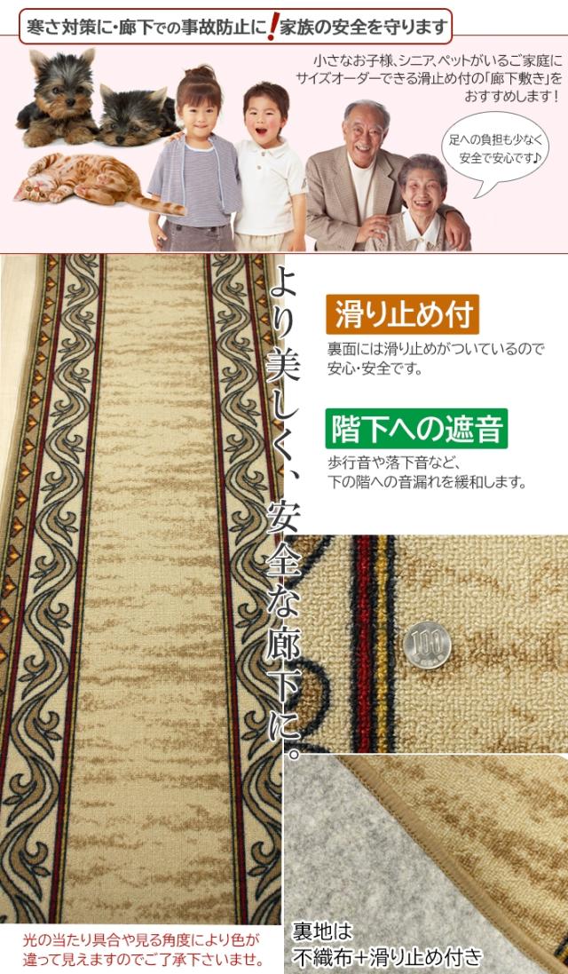 廊下 ロングカーペット カーペット 廊下敷き 洗える 遮音 約80cm幅 切り売り (1cmあたり) リリアン (Y) 1cm単位で サイズオーダー 縁かがり付き