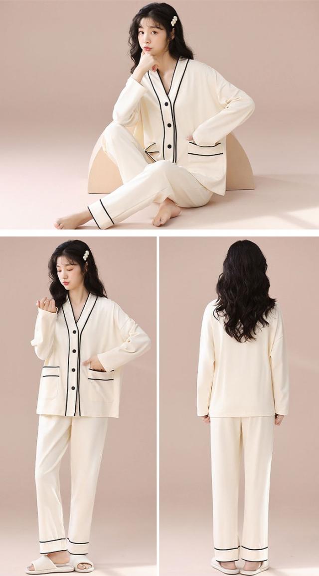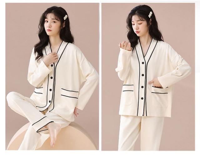 パジャマ レディース 女の子 大人 長袖 薄手 ルームウェア 上下セット 薄地 北欧 可愛い 前開き 春 夏 秋 女性 コットン 部屋着 dh080zbcyxq