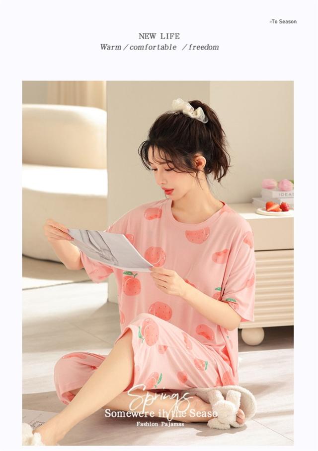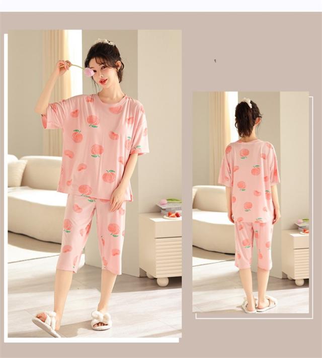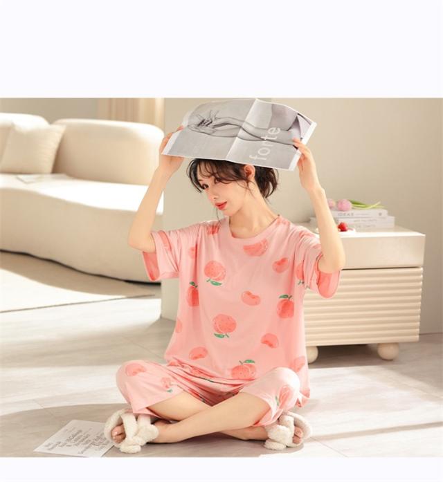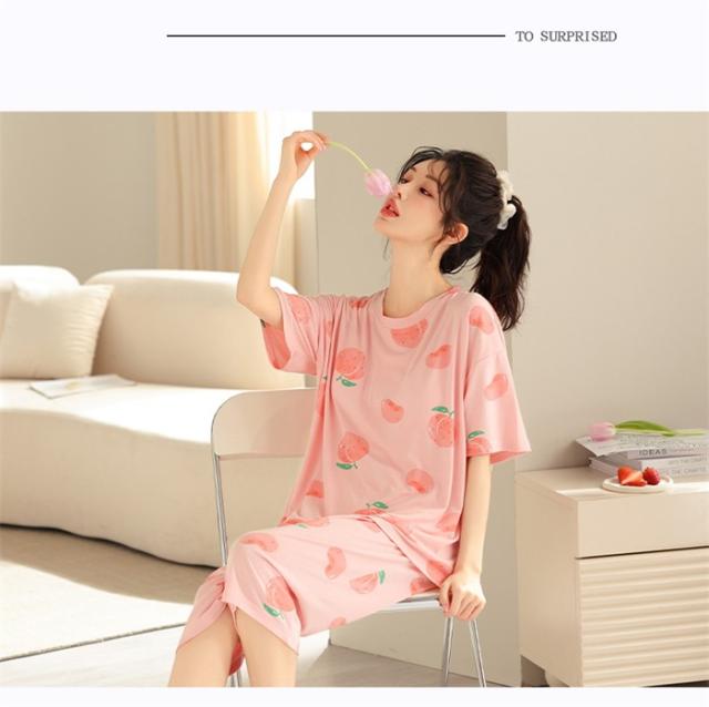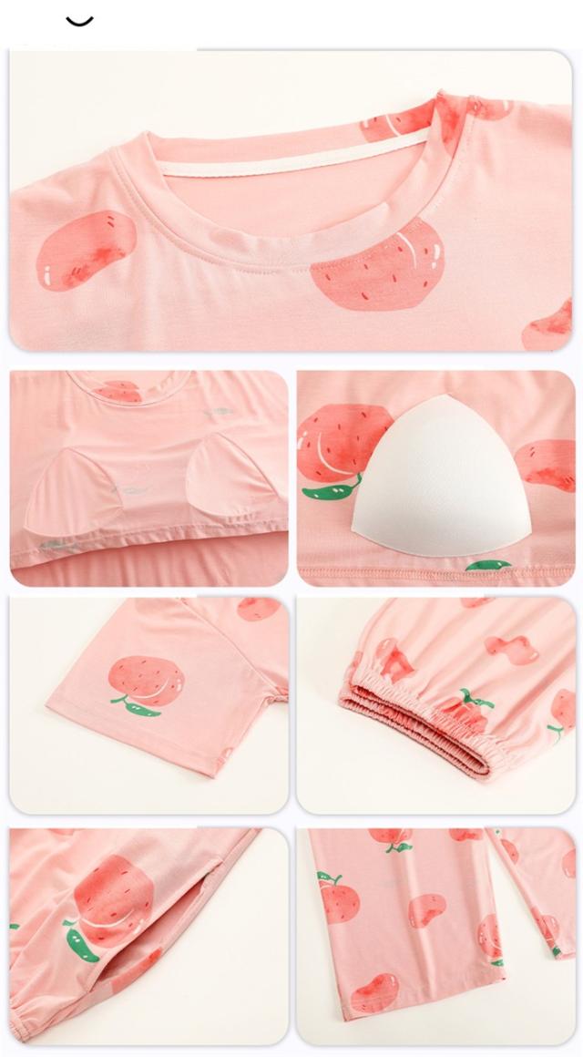 パジャマ レディース 桃柄 半袖 上下セット 胸パッド付き ピンク 部屋着 寝間着 ルームウェア ぽっちゃり 春 夏 可愛い かわいい 薄手 d1146d7cyxq