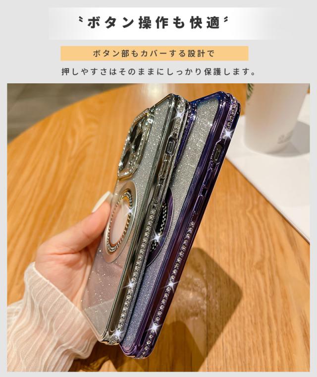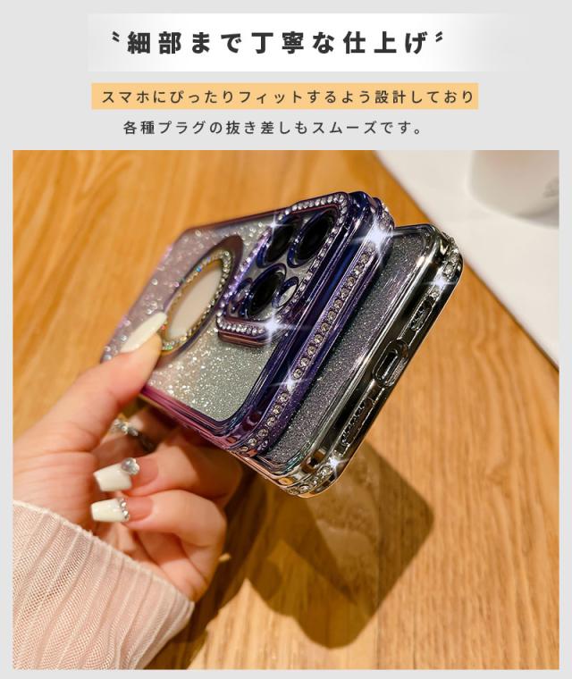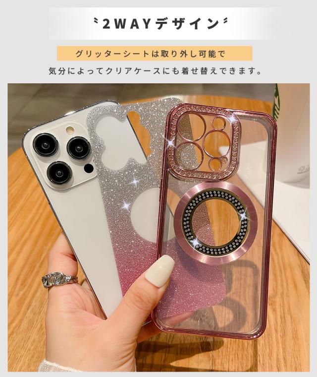 | ・高透過率 透過率の高い素材を使用し、スマホ本体のカラーを損ないません。 ・レンズ保護もばっちり カメラ部分に合わせた設計で、レンズが傷付くのを防ぎます。 ・2WAYデザイン グリッターシートは取り外し可能で、気分によってクリアケースにも着せ替えできます。 ・メッキ加工仕上げ ケースのサイドにはメッキ加工と精密なデザインで高級感を演出した仕上がり。 ・高品質ラインストーン 輝きが美しい高品質のラインストーンをたっぷり使用 ・MagSafe充電に対応 ケースを装着した状態でのMagSafe充電(マグセーフ)に対応しています。 |