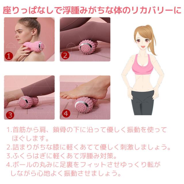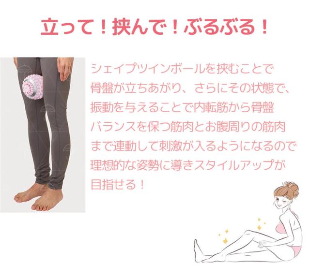 シェイプ ツインボール 振動 振動ボール ミニ マッサージ ストレッチ エクササイズ 筋肉 充電 充電式 癒し コードレス 背中 腕 腰 お尻 ふくらはぎ 足裏 コンパクト コンディショニング ケア ピンク ブラック 3600回 振動/1分 4段階モード