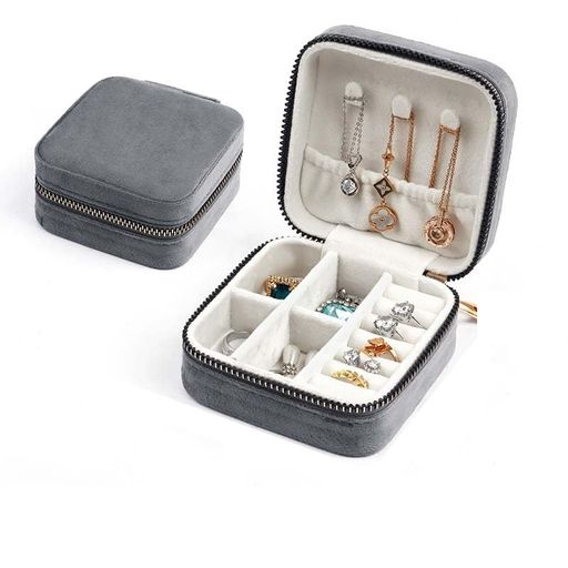 ジュエリーケース 携帯用 ジュエリーボックス ベルベット アクセサリー コンパクト ネックレス リング 指輪置き 腕時計 化粧品 プレゼント 持ち運び便利 旅行 トラベル グレー