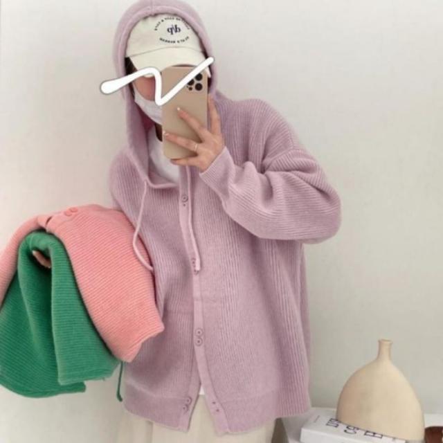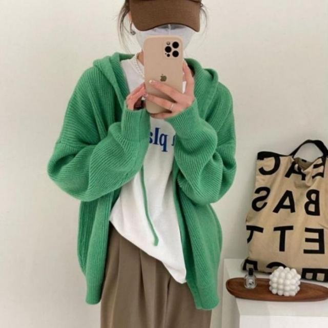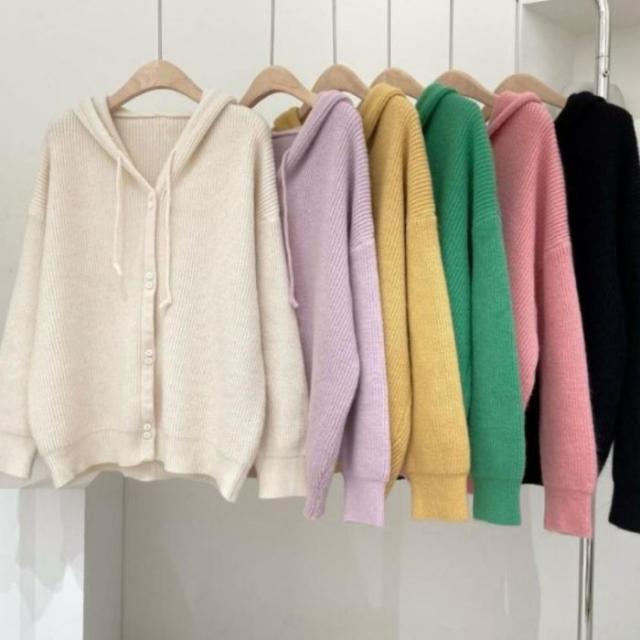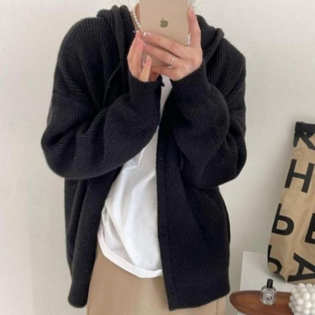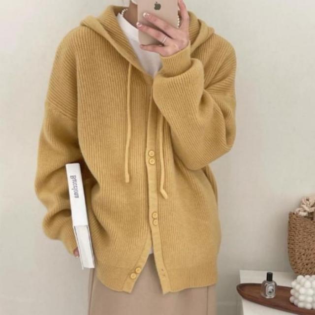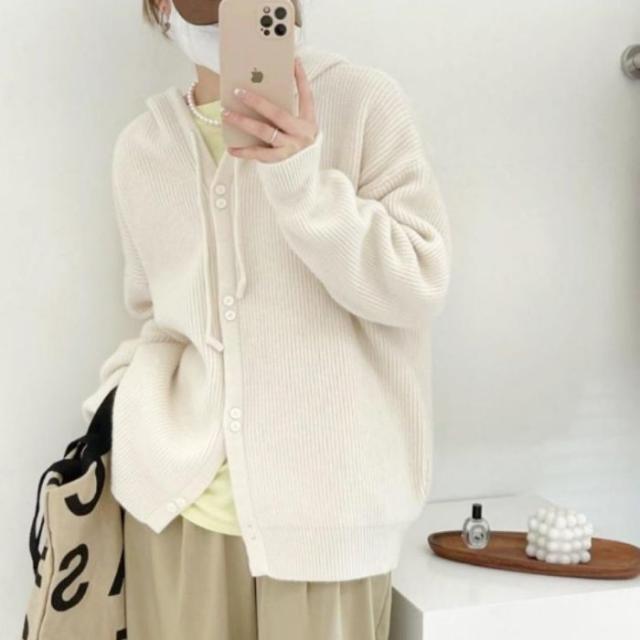 【ニットフードカーディガン】