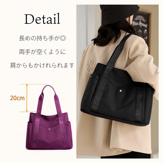 - お値段以上に安くて形からデザインまで、いいです♪素材は丈夫に出来てます。撥水するトートバッグを探していて購入しました。雨の時も撥水するので安心♪前まで使ってたトートバッグは撥水するトートバッグでしたので。外ポケット、内ポケットあり内ポケットも沢山あって、ちょっとした物を入れるのもいいかな。普段用に使おうと思います。買い物に、いいかも♪大事に使います。ありがとうございました。