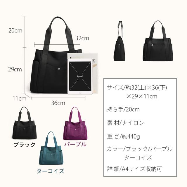 トートバッグ a4 ナイロン レディース メンズ マザーズ 軽い 大きめ 軽量 ファスナー付き 撥水 肩掛け 通勤 通学 カバン バック 鞄 大容量 ビジネス 自立 シンプル おしゃれ 多収納