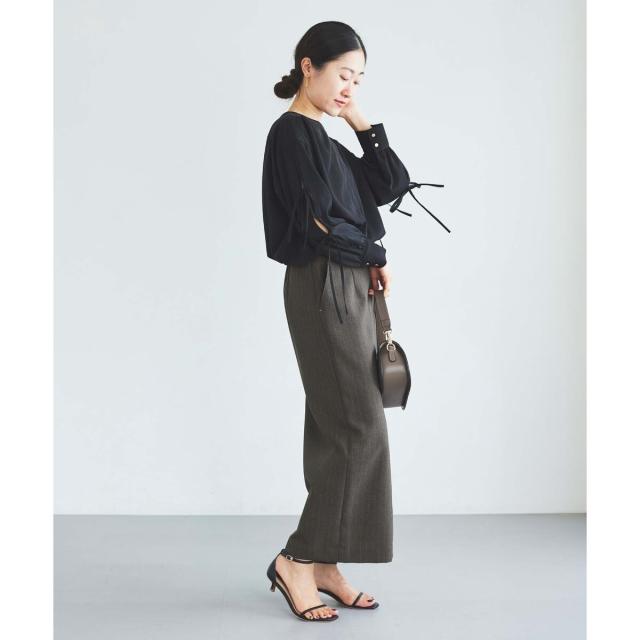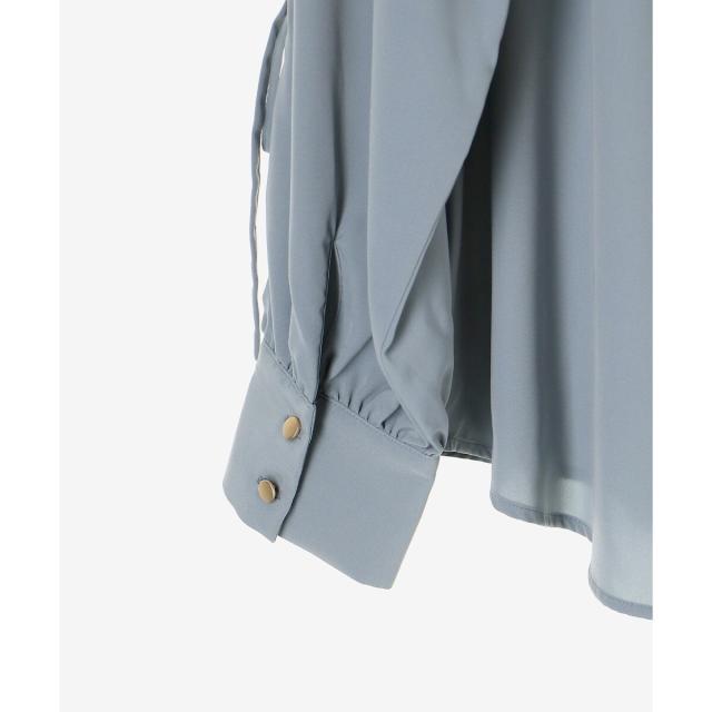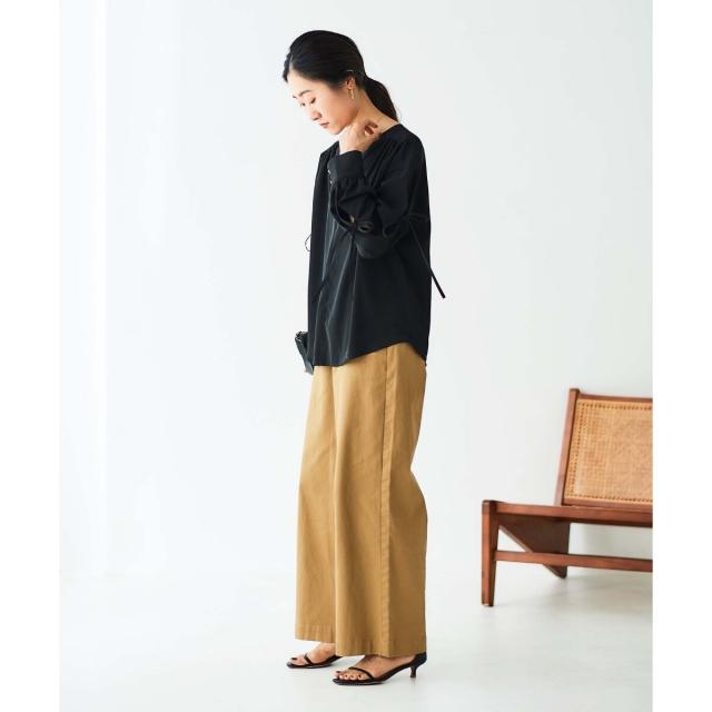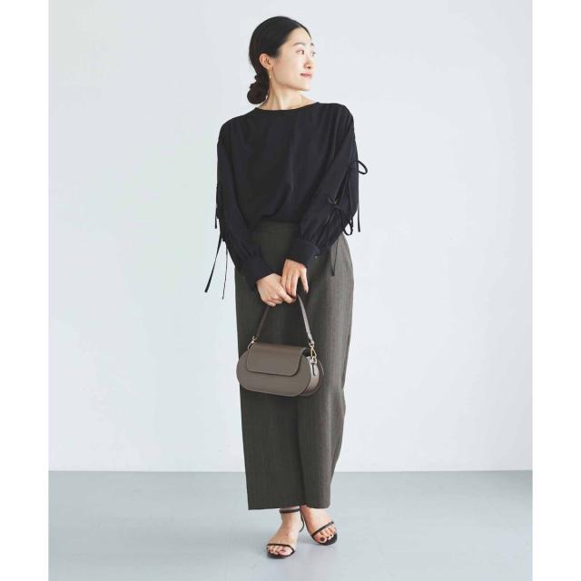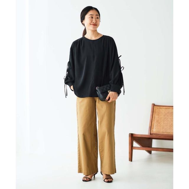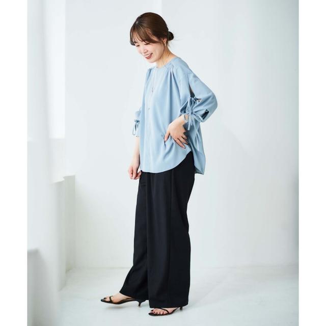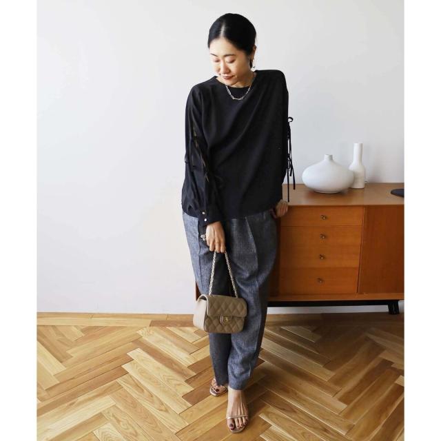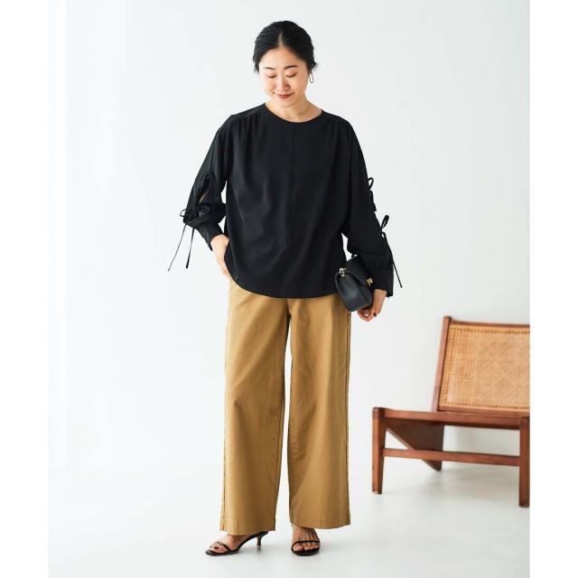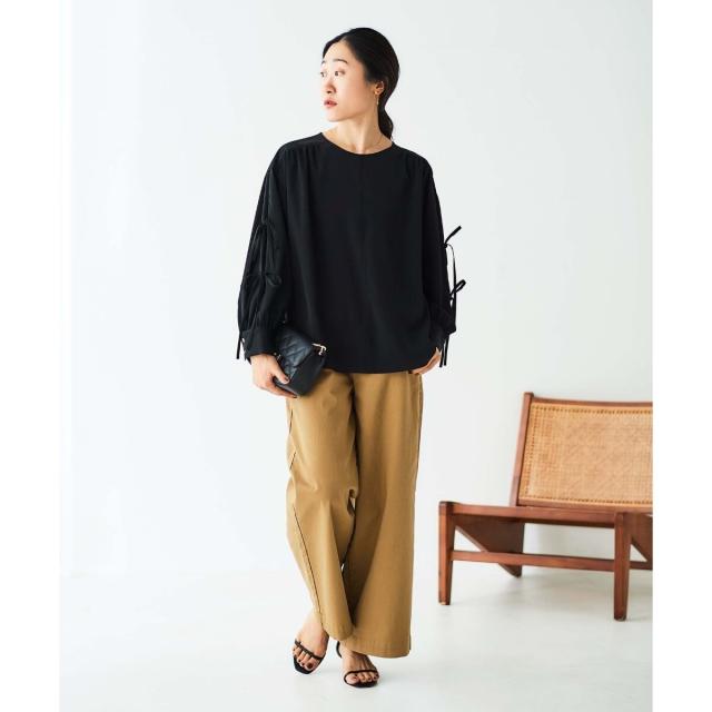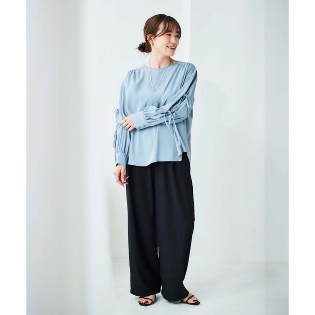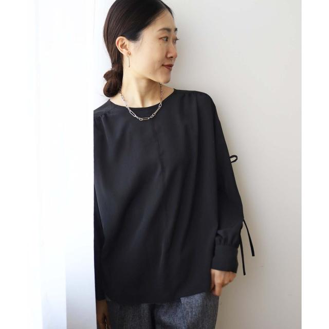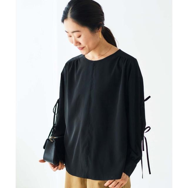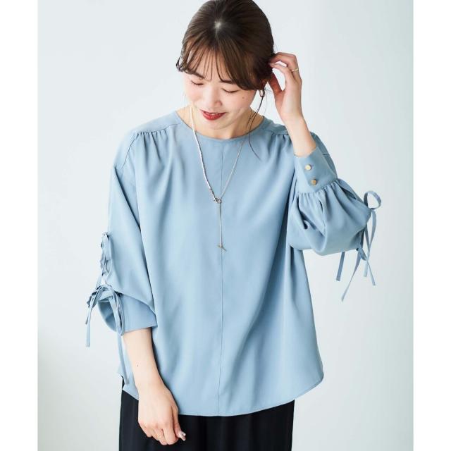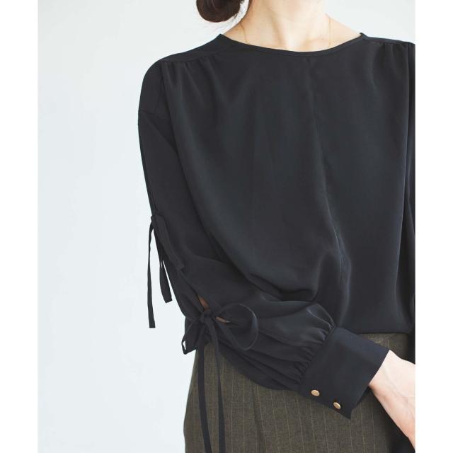 袖のスリットにあしらったリボンがポイントのブラウスです。