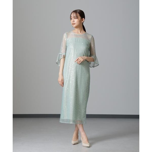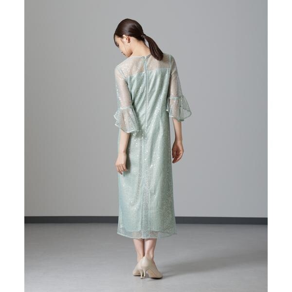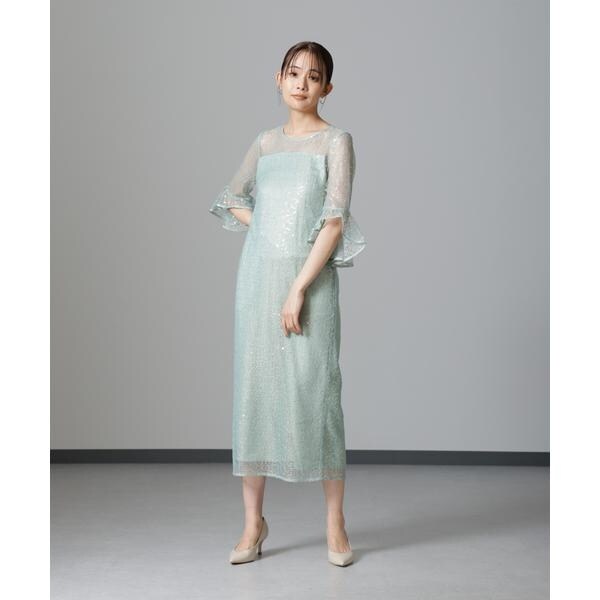 煌めくスパンコールレースが華やかなワンピース。ほんのり肌を透かすシアー素材が女性らしさを惹き立ててくれるから、オケージョンシーンも様になる逸品です。