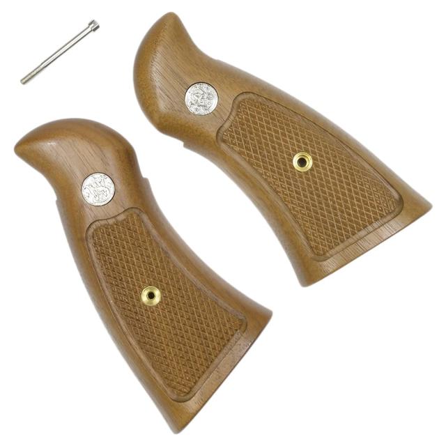 同社のM28やM29など、グリップ形状がスクエアバットのS&W Nフレームに装着可能な、ウォールナット製チェッカーグリップ。