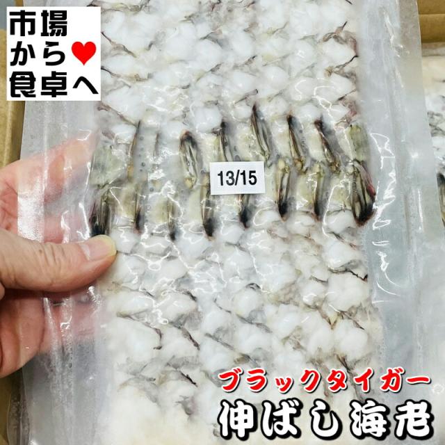 伸ばし海老 ブラックタイガー海老 1パック15尾入【業務用・サイズ13/15】天ぷら、フライに簡単調理【冷凍便F】