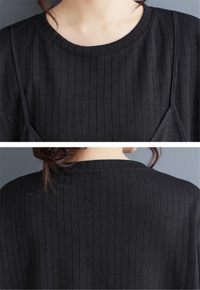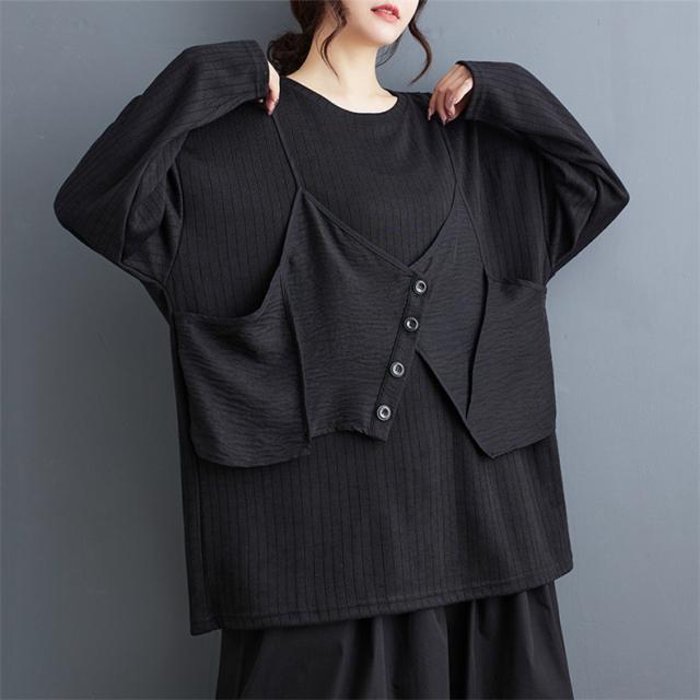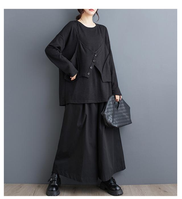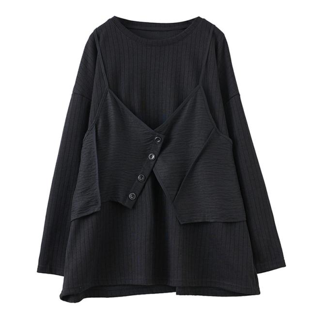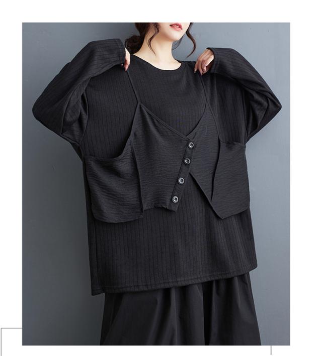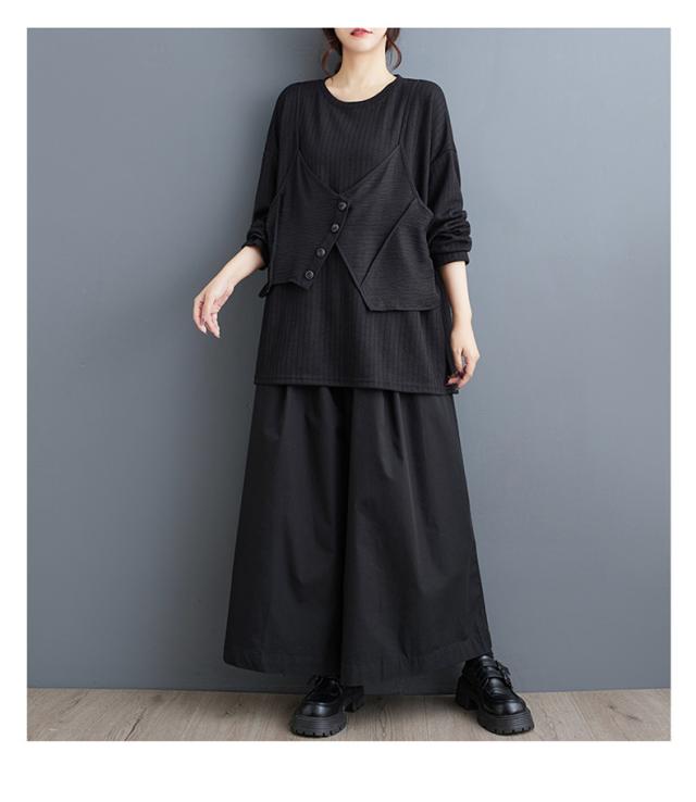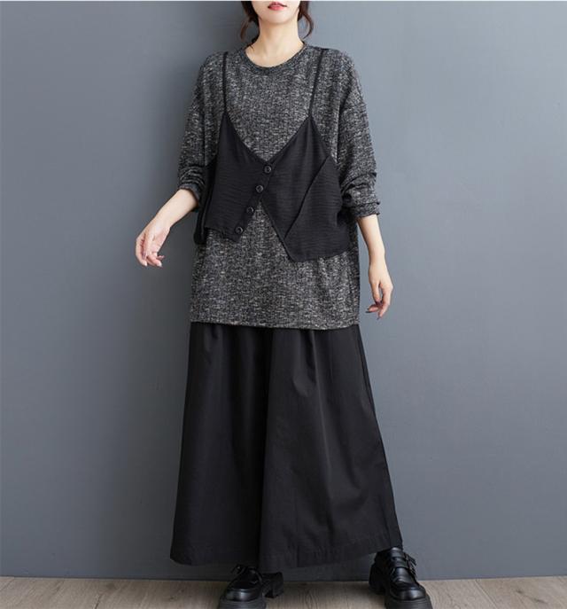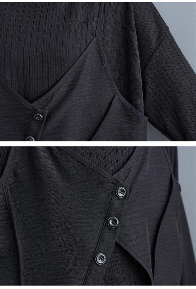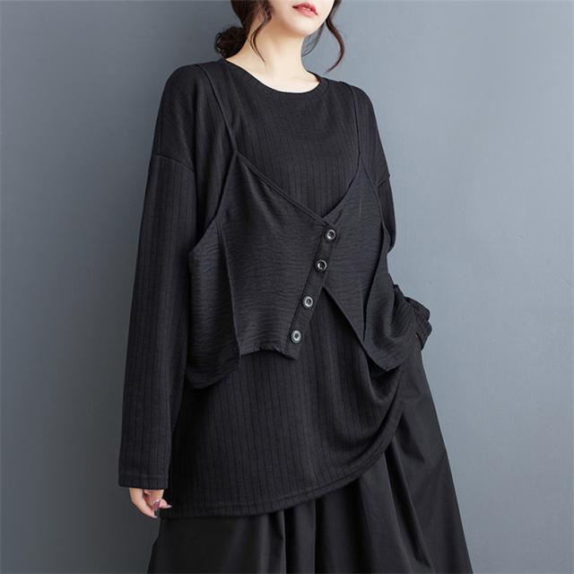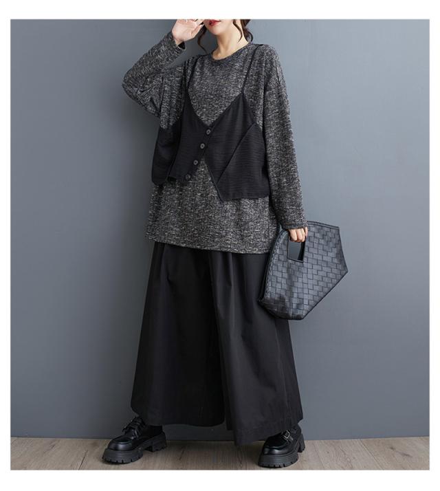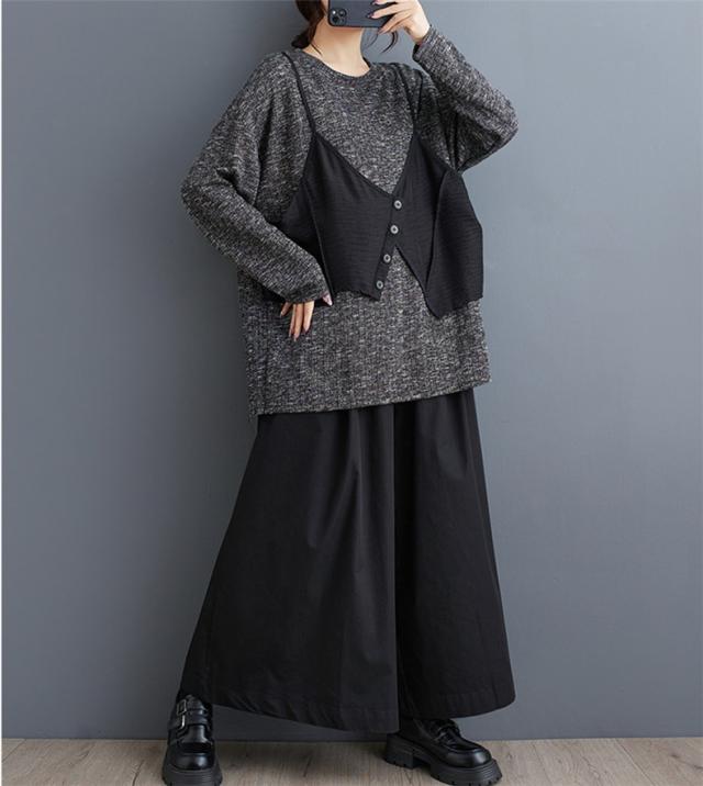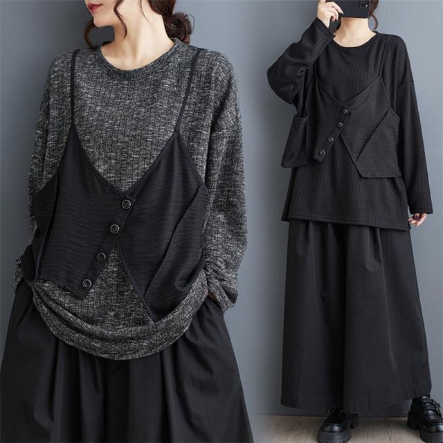 トップス カットソー レイヤード風 レディース トップス 丸首 クルーネック ボリューム袖 切り替え プルオーバー 重ね着風 カジュアルになりすぎない