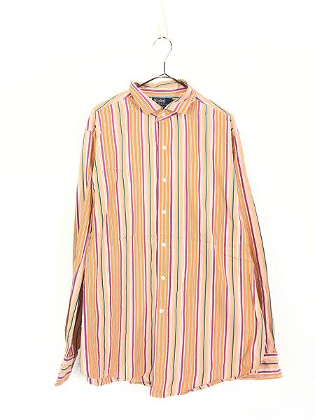 古着 Polo Ralph Lauren 「ESTATE SPORT」 マルチ ストライプ ワイドカラー シャツ XL 古着