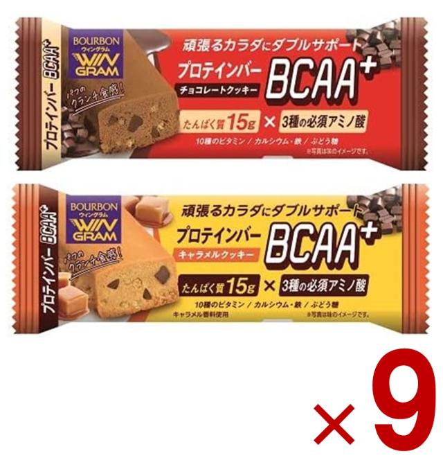 ブルボン プロテインバー BCAA+ 2種 アソート セット チョコレート クッキー キャラメル クッキー プロテイン タンパク質 9個
