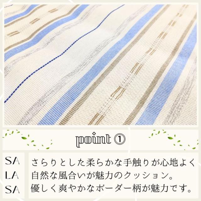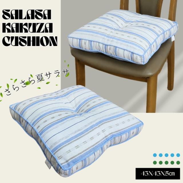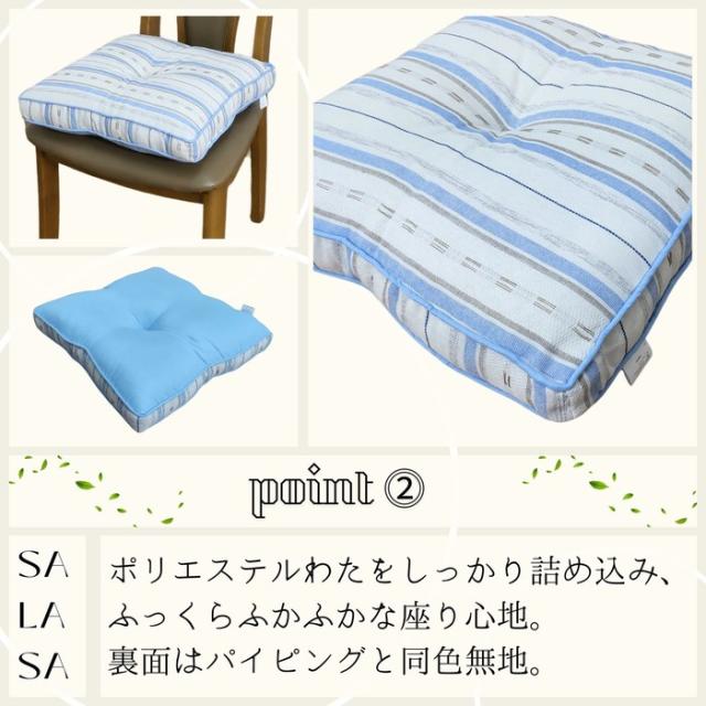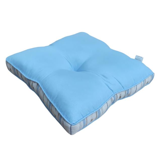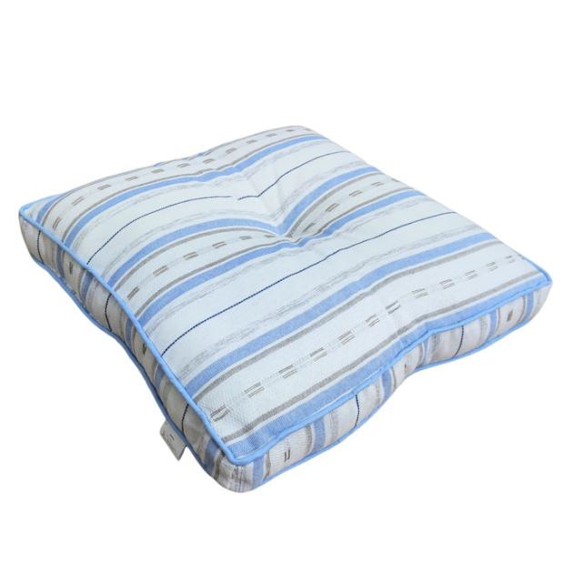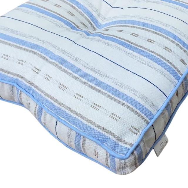 インド綿風生地 マチ付厚手角座クッション サラサ ブルー色 角型 43x43x5cm さらさらボーダー柄 お尻に優しい