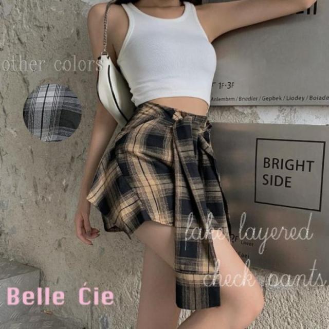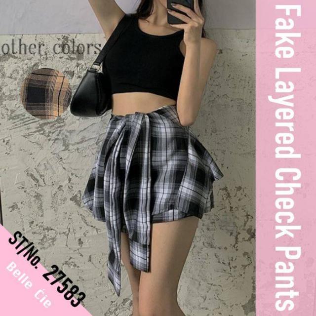 チェック スカパン スカートパンツ インナーパンツ チェックパンツ フェイクスカート フェイク セクシー 腰巻き ギャル ショートパンツ ショーパン
