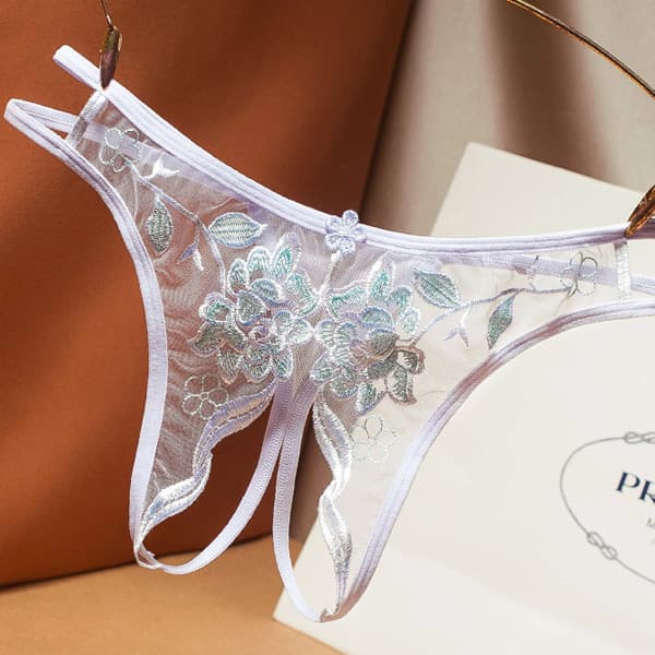 ●商品名:花柄刺繍 フロントオープンクロッチ シースルー Tバックショーツ 2301