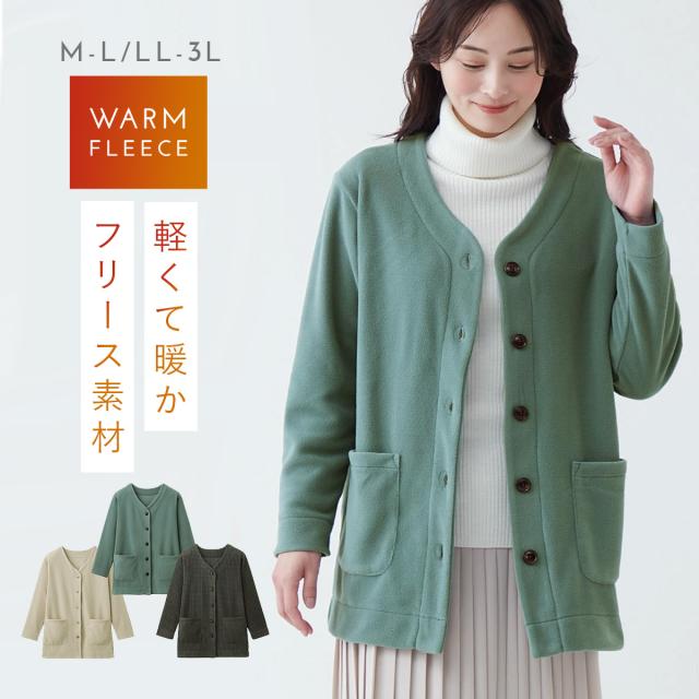 カーディガン レディース フリース 冬 秋冬 軽い お尻が隠れる 洗える フリースカーディガン 暖かい あったか M L LL 3L 大きいサイズ ゆったり 長袖 vネック 体型カバー ポケット付き 軽くてあったかフリースカーデ ロング 無地 シンプル オフィス 制服 事務服 通勤 ...