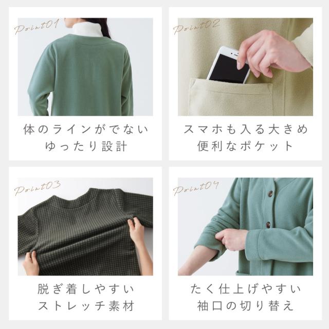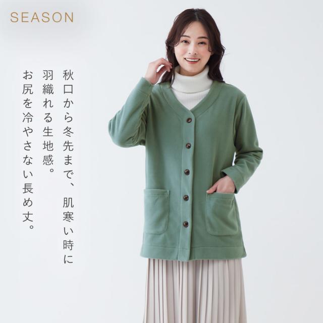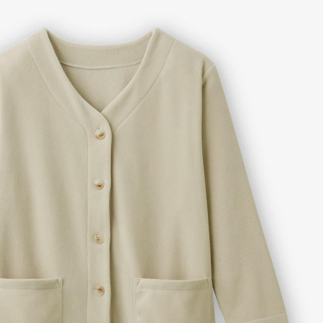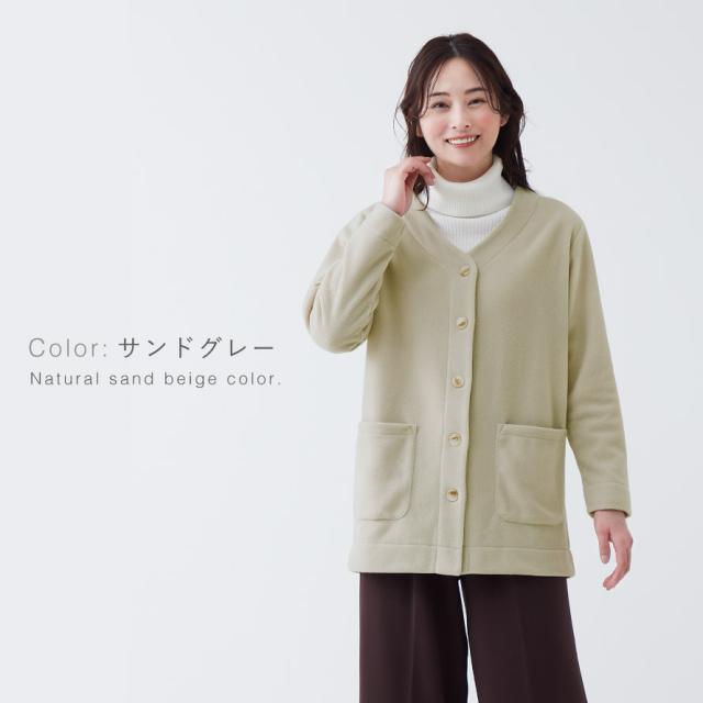 軽くてあったか。リラックスタイムに快適なカーディガン。フリース素材で軽くてふんわりあたたかな着心地。リビングや寝室、お部屋などでくつろぐ時や、近所のお出かけにも便利です。