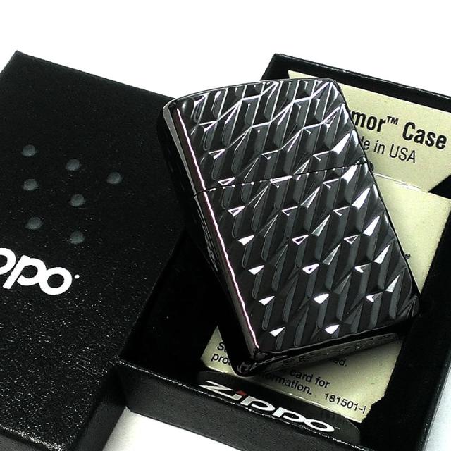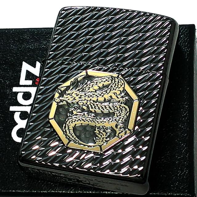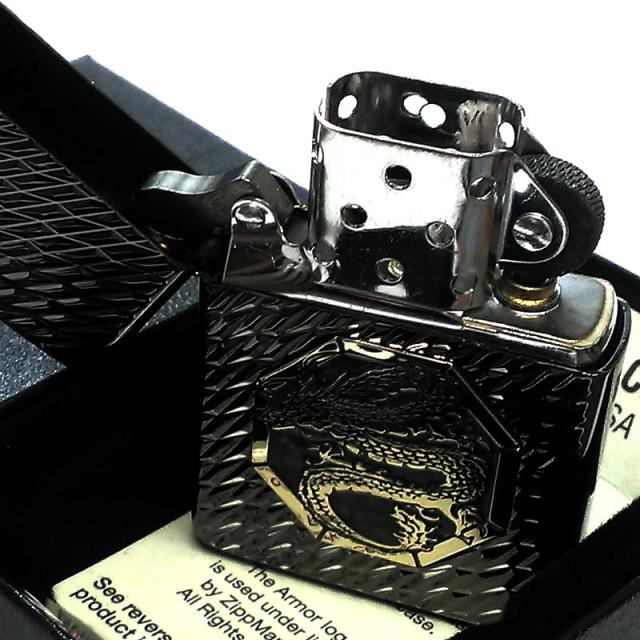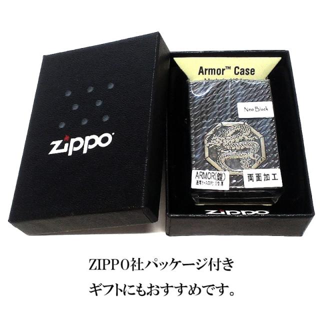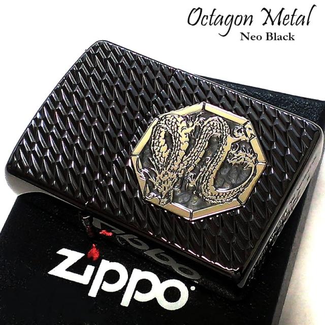 ZIPPO アーマー ジッポライター オクタゴンメタル ドラゴン ダイヤカット彫刻 両面加工 ネオブラック 龍 重厚 高級 かっこいい おしゃれ メンズ ギフト プレゼント