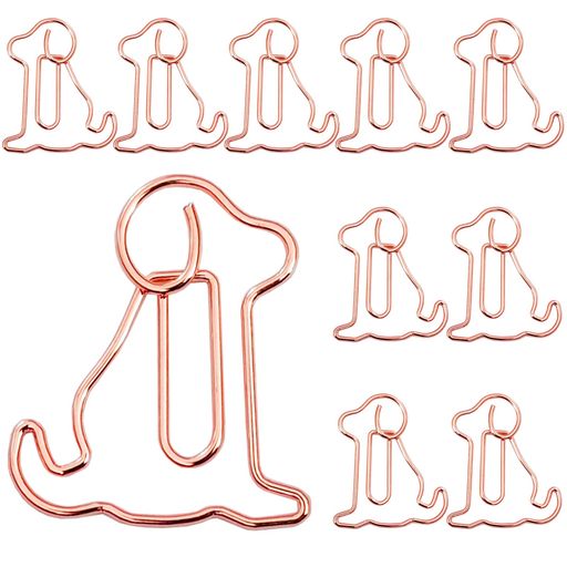 【製品仕様】●セット内容:ペーパークリップ10個入り;●デザイン:犬;●サイズ:約29*25mm、線径:約1mm、重量:約0.9g/個;●素材:スチール+電気メッキ;●色:ピンクゴールド