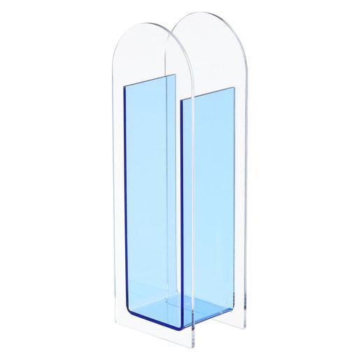 カラー:ブルー;素材:アクリル;花瓶サイズ:5 x 5 x 16 cm / 2 x 2 x 6.3 インチ(長さ×幅×高さ);全体の寸法:7.5 x 5.5 x 22 cm / 3 x 2.2 x 8.7 インチ(長さ×幅×高さ);梱包リスト:1個 x アーチ型アクリルフラワーベース