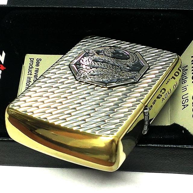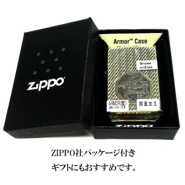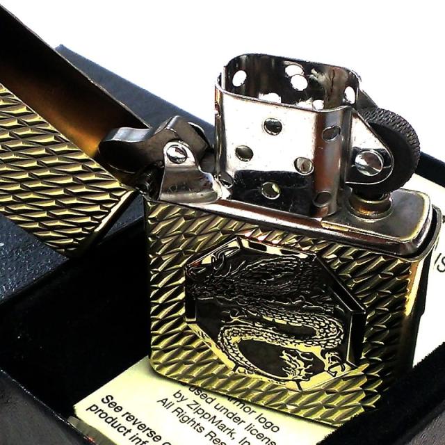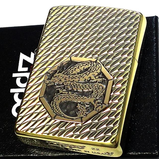 ZIPPO ライター かっこいい アーマー オクタゴンメタル 龍 ジッポ 両面加工 ダイヤカット彫刻 ブラス ドラゴン 重厚 高級 イブシ おしゃれ メンズ ギフト プレゼント