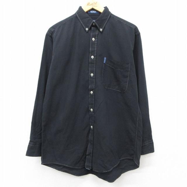 古着 ラルフローレン Ralph Lauren 長袖 ブランド ポロ シャツ メンズ 90年代 90s ワンポイントロゴ 鹿の子 コットン USA製 紺 中古 古着