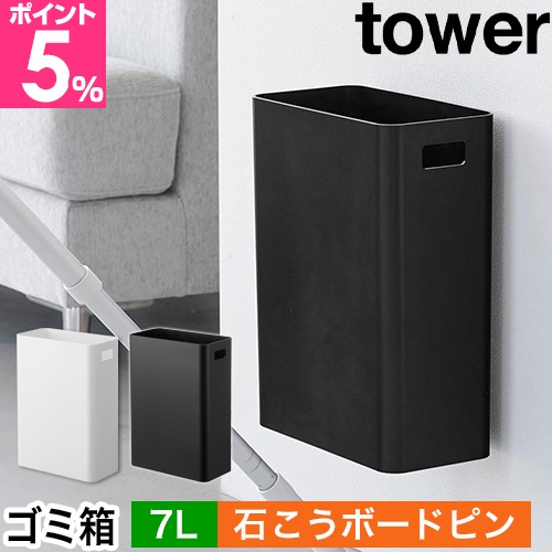 山崎実業 ゴミ箱 ダストボックス ゴミ入れ トラッシュ缶 スリム 角型 おしゃれ インテリア 小さい 浮かせる 蓋なし ごみ箱 コンパクト リビング ゴミ 収納 ベッドサイド 洗面所 yamazaki タワーシリーズ 白 黒 ウォールトラッシュカン タワー 7L 石こうボード壁対応 tower 1630 1631 4903208016308 4903208016315