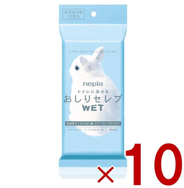 【23-29日限定 タイムセール】ネピア おしりセレブ 携帯 ウェット お出かけ 無香料 12枚入 10個セット トイレットペーパー トイレに流せる おしり 子供