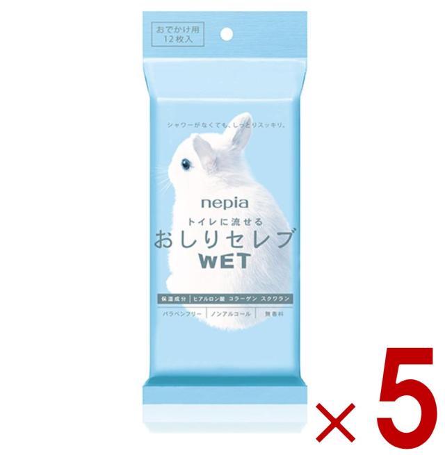 【23-29日限定 タイムセール】ネピア おしりセレブ 携帯 ウェット お出かけ 無香料 12枚入 5個セット トイレットペーパー トイレに流せる おしり 子供