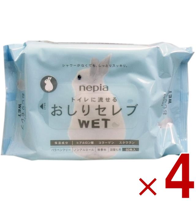 ネピア おしりセレブ WET ウェット 詰替え 60枚入り 4個セット おしりふき トイレに流せる 無香料